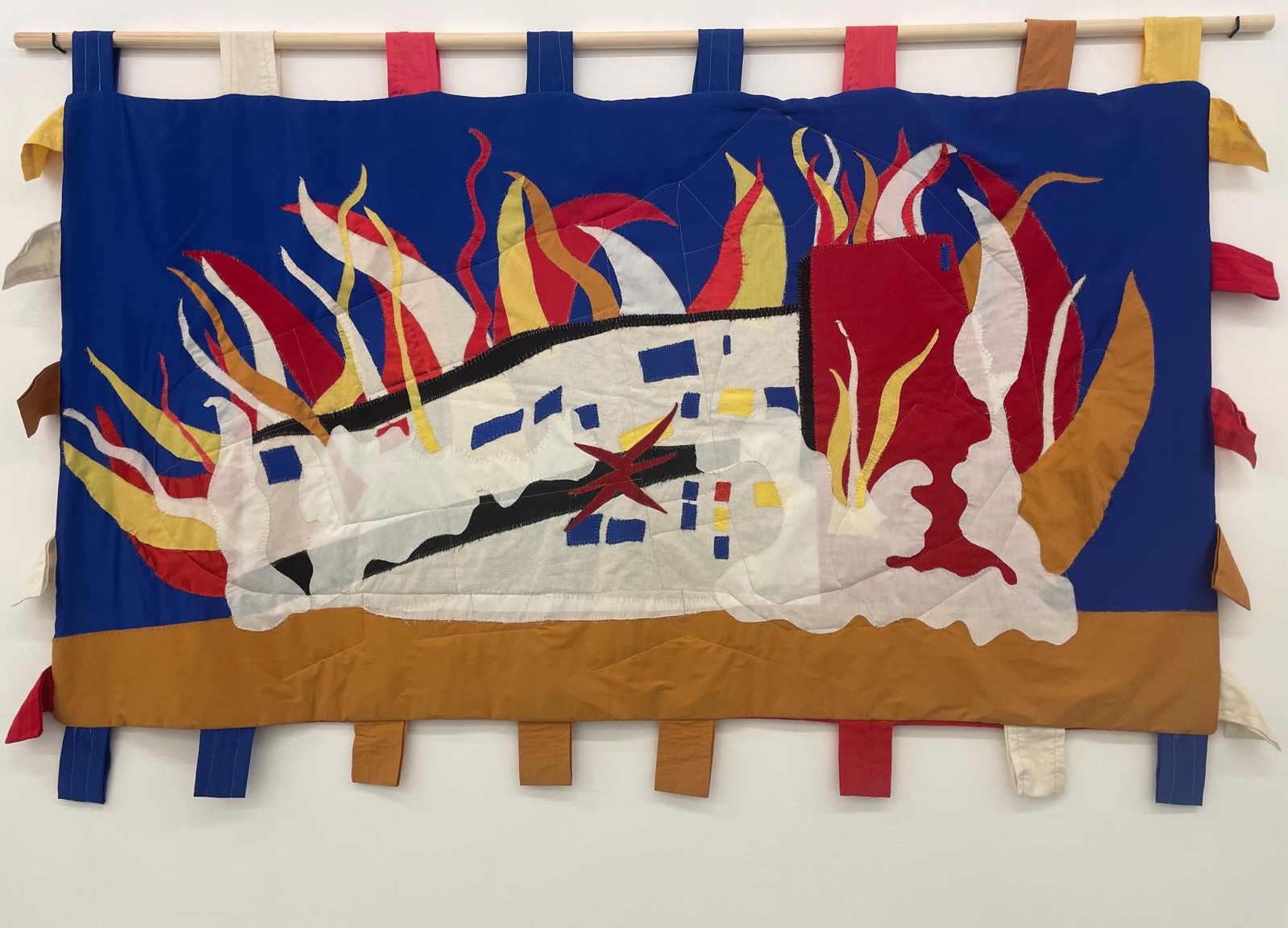 Wood, enamel paint, barrier rope, ring, paper 110 x 150 x 138 cm